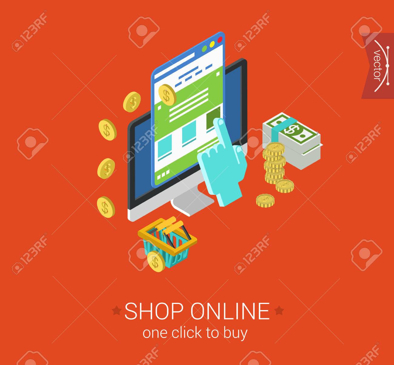Online Shopping Process Website Item Buy Click Pay Flat 3d Isometric Pixel Art Modern Design Concept Vector Icon Web Banner Illustration Website Click Infographic E Commerce Business Store Interface Royalty Free Svg Cliparts